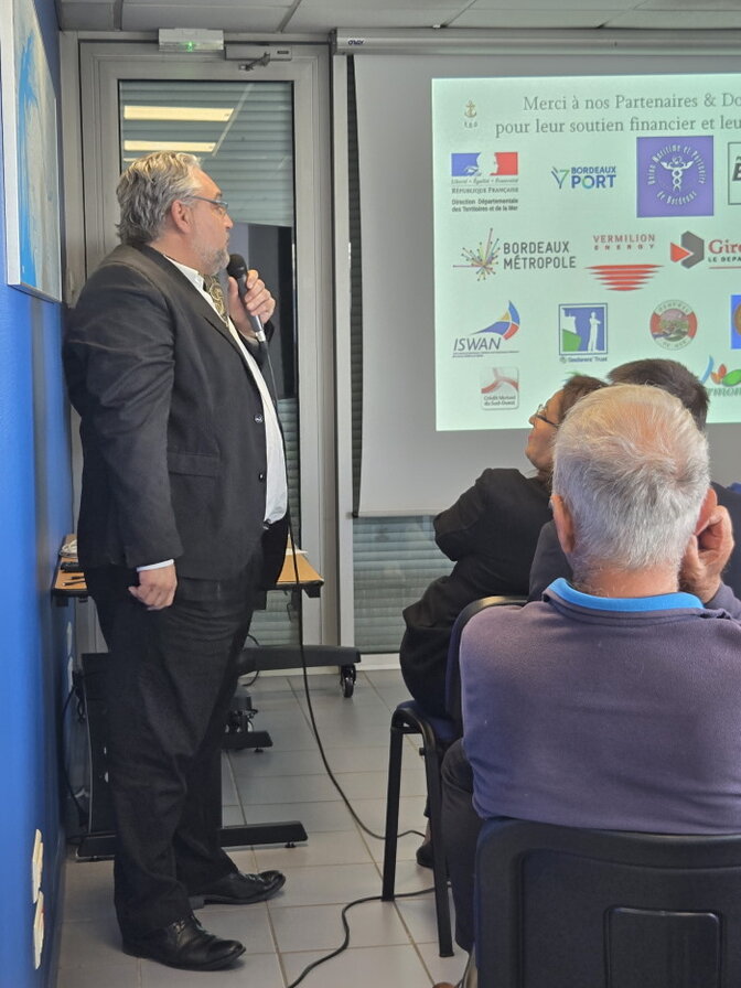 Mme Yasmina BOULTAM Conseillère Régionale, Mr Stéphane PERES DIT PEREY représentant Mr Jean TOUZEAU Maire de Lormont, le Cdt LIETARD représentant le Cdt SINQUIN, Commandant du port de Bordeaux, Mr Jean-Yves CARLIER, Directeur départemental adjoint délégué à la mer et au littoral, Mr Julien MAS, Président du Club Maritime (UMPB), Mr Francis LAVERRIÈRE Président du Mérite Maritime 33 et Mr Jean-Pierre TURON ancien Maire de Bassens, représentant son successeur Mr Alexandre RUBIO, aussi Président du conseil de surveillance du Grand Port Maritime de Bordeaux, entourés par les 32 adhérents présents, qui avec 40 autres ayant donné leur pouvoir, ont permis de valider le quorum pour notre Assemblée Générale Annuelle :
